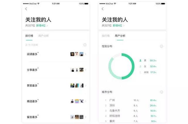 .及時(shí)查看新關(guān)注用戶的信息,或通過(guò)排行榜了解最關(guān)心你的用戶。