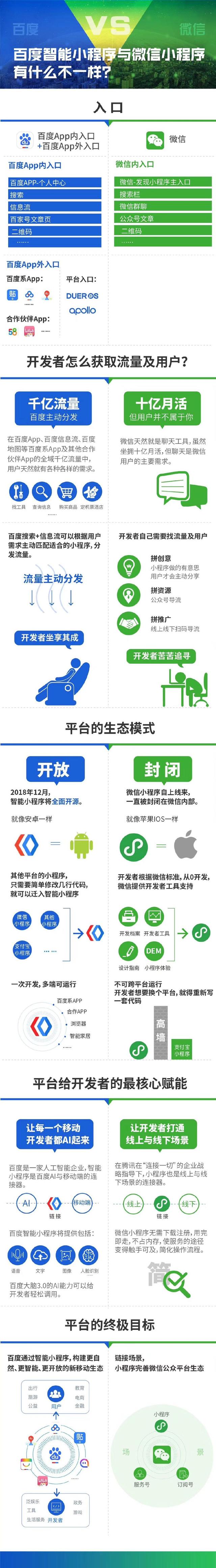 隨著微信小程序持續(xù)的告訴發(fā)展,又加之百度發(fā)布了百度智能小程序,最近,很多客戶都咨詢我們兩者之間具體有什么區(qū)別?做哪款小程序更適合企業(yè)?根據(jù)客戶的反映,我們綜合整理了一下,通過下面的圖來跟大家說說百度智能小程序與微信小程序之間的區(qū)別,但是,具體您要做哪款還是要根據(jù)您的實際需求來定,比較兩者之間的側重點是不一樣的!具體戳圖來看...